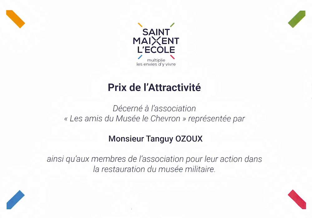 La ville de Saint-Maixent-L'École a remis le prix de l'attractivité à l'association «Les Amis du Musée - Le Chevron» pour son action dans la restauration du musée du sous-officier.